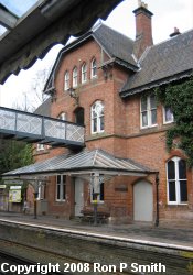 The photo on the right shows the main station building with direct access to the footbridge due to the low track level relative to the surrounding roads.