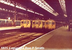 The photo shows the platforms serving the Southport route in the mid 1970s. Exchange station was demolished after the creation of the Moorfields underground station which now enables trains from Southport to continue further south as part of the Merseyrail "Northern Line". |