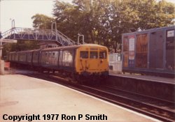 The photo on the left shows the station in the opposite direction on the 4th of June 1977 with a train bound for Southport entering the station. |