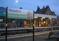 Hooton station is located on Merseyrail's "Wirral Line" along the branch that runs from Liverpool Central to Ellesmere Port and Chester. The station sits between Eastham Rake station and Capenhurst station (trains to Chester) and Little Sutton station (trains to Ellesemere Port).