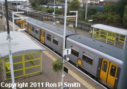 The view on the right shows the station with a train southbound for central Liverpool. In the distance (top left corner of the photo) is a train depot that is adjacent to the station. |