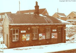 The photo on the right shows the station building on the eastbound platform during the winter of 1980-1981.