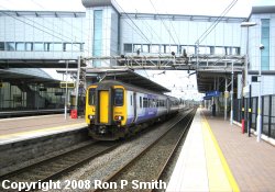 The photo on the right shows a train bound for Liverpool Lime Street station on one of the "City Line" platforms.